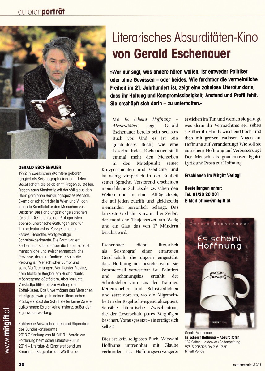 - Es scheint Hoffnung – Absurditäten I 2018 I Mitgift Verlag, Wien